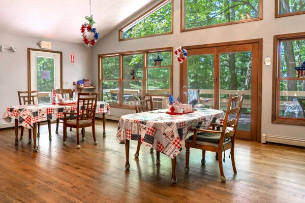 Three home-cooked meals are prepared daily and served in our sunny dining room with lovely forested views.