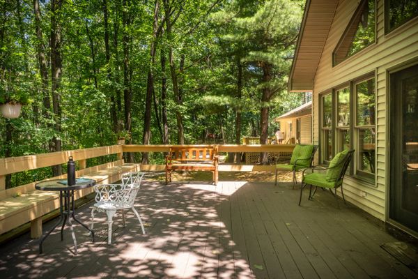 The great room is an excellent place to gather with friends, read a book, play a game, or just enjoy the fireplace and, of course, the views of the lovely trees and animals outside. Another sitting